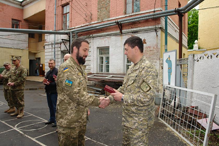 Медаль «Защитнику Отчизны» вручили Александру Калию, начальнику отдела связи и информатизации Шевченковского райвоенкомата Харькова, Алексею Крютченко, главному сержанту роты 92-й бригады, а также Виталию Лейко, заместителю командира механизированной роты 92-й бригады.