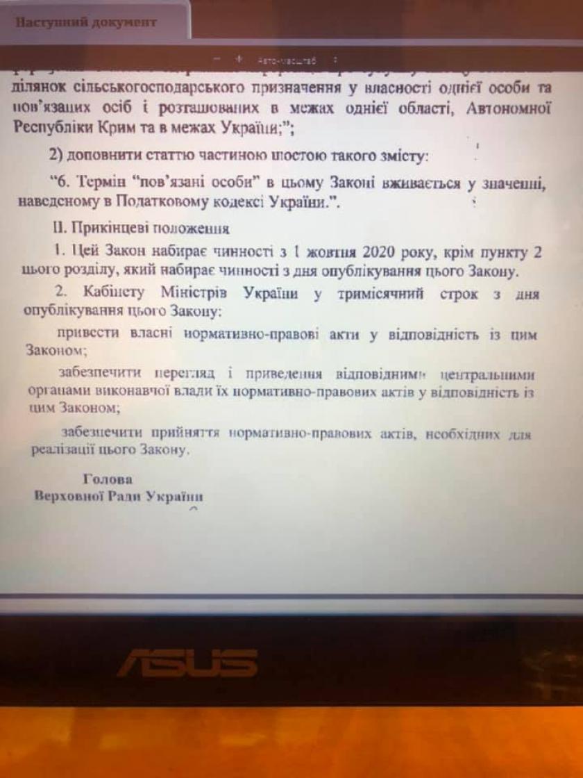 25 сентября Кабмин утвердил проект Закона о рынке сельскохозяйственной земли, который передаст на рассмотрение парламента. Текст документа опубликовал народный депутат от "Европейской солидарности" Алексей Гончаренко.