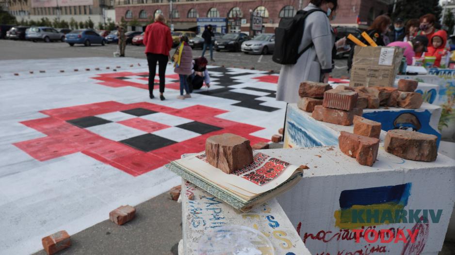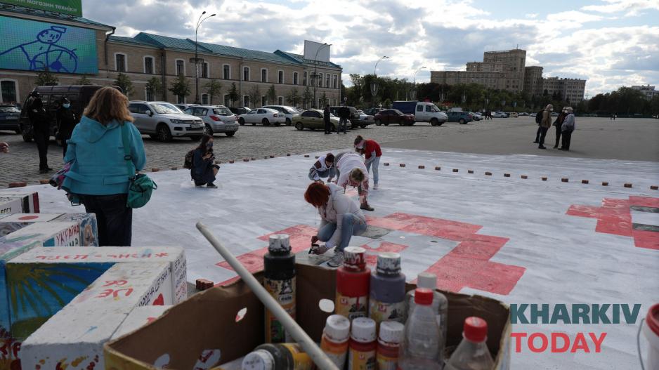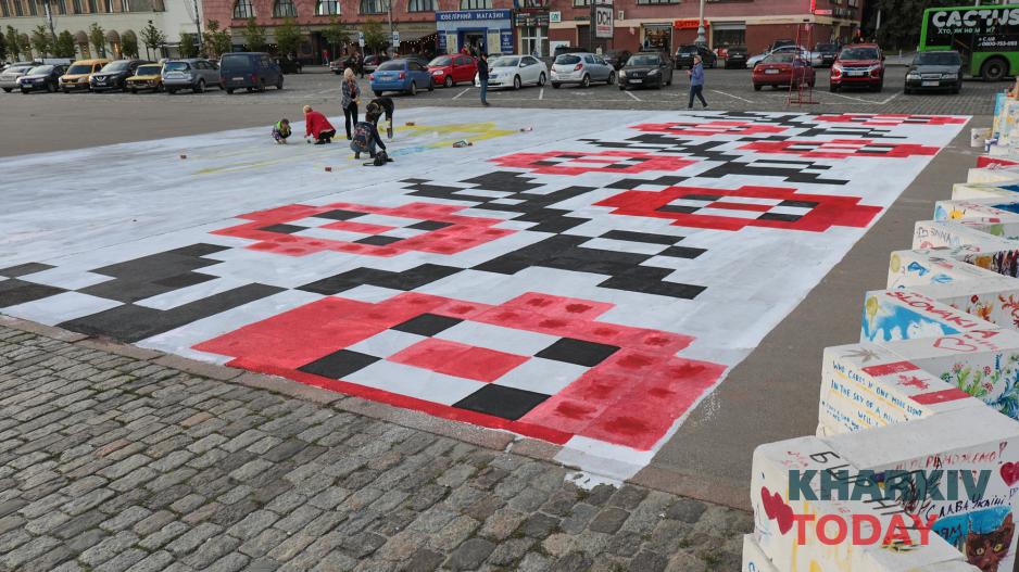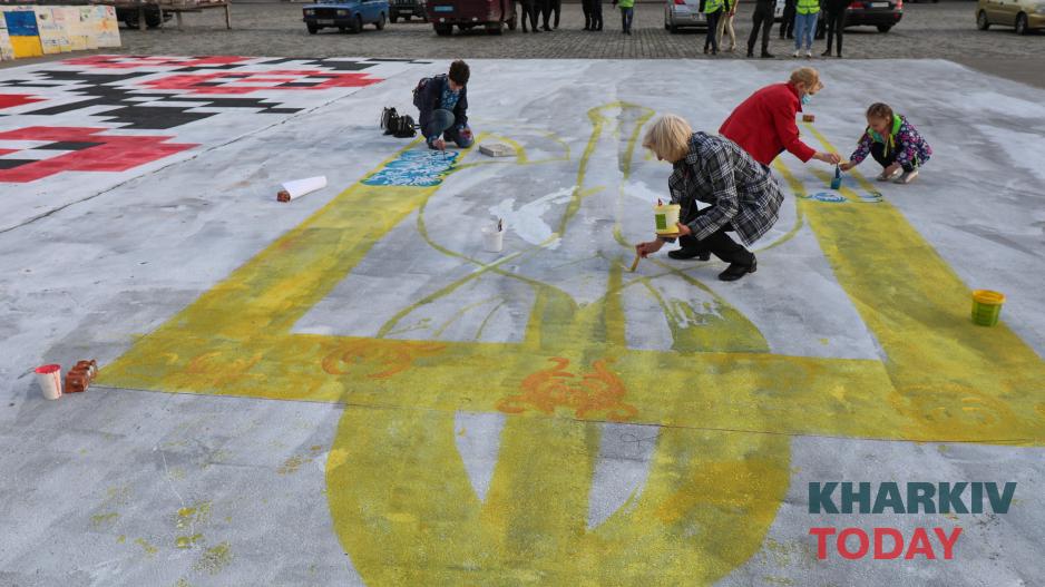 21 мая в Харькове отметили День вышиванки. На площади Свободы жители города нарисовали большую вышиванку. Активисты наметили квадраты для разных цветов и раздали желающим кисти и краски. Спустя время площадь украсил традиционный декоративный узор и трезубец.