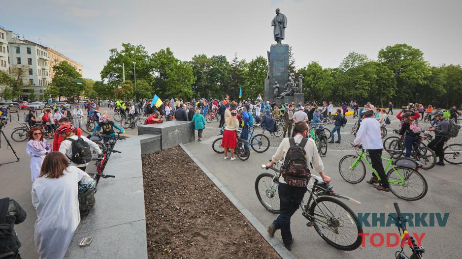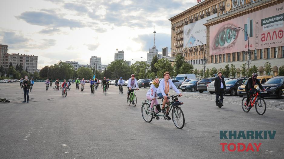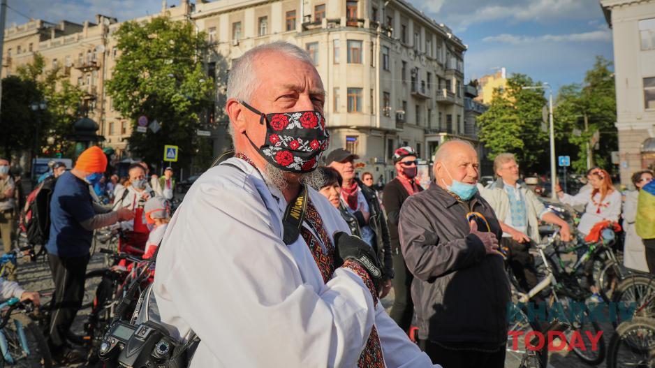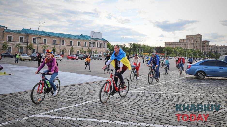 К вечеру у памятника Шевченко собрались велолюбители. После исполнения гимна Украины стартовал велозаезд в вышиванках. Харьковчане украсили велосипеды патриотической символикой, сами надели вышиванки и тематические средства защиты. Затем велосипедисты передали эстафету автомобилистам, которые тоже проехались по городу в вышиванках и украинскими флагами.