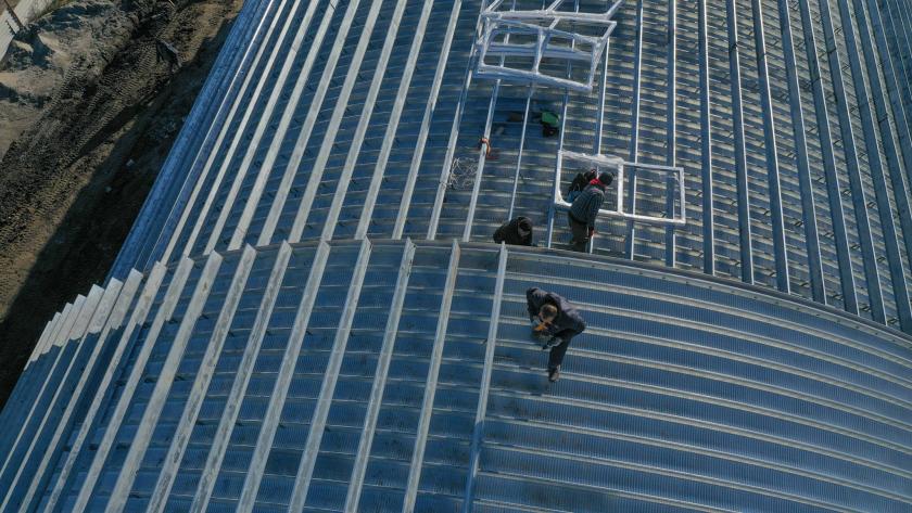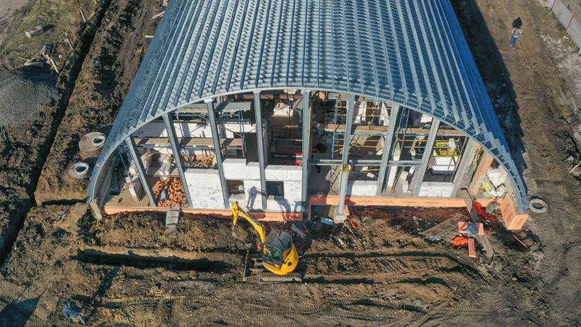 Строительство физкультурно-оздоровительного комплекса в Новопокровке началось в 2019 году, в конце октября этого года уровень строительных работ составил 70%. Тогда на объекте утепляли внешние стены купола и проводили электрику. Затем планировали благоустроить прилегающую территорию. Были готовы стены, шло остекление, провели тепло и водоснабжение.