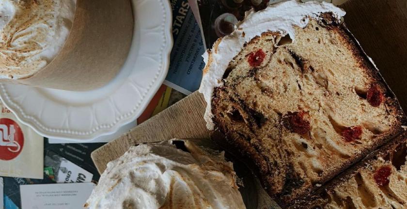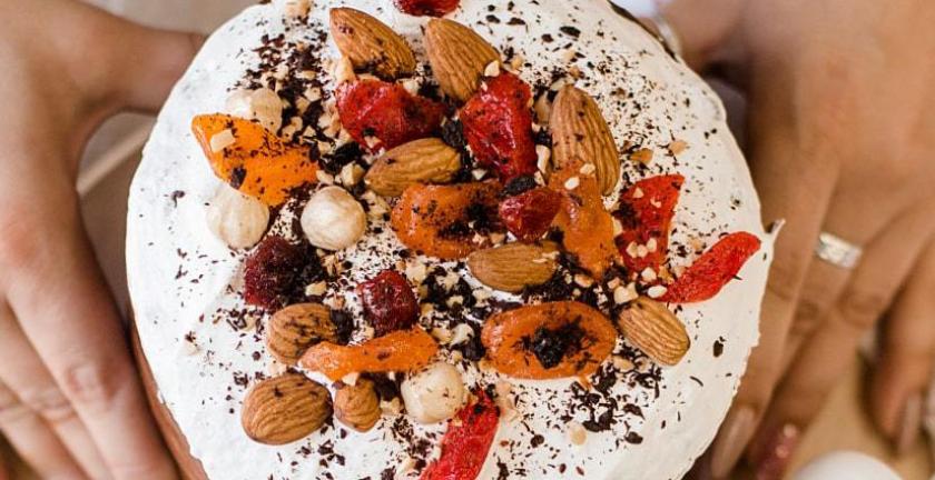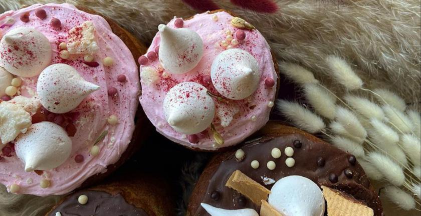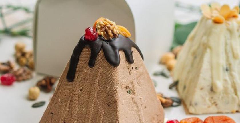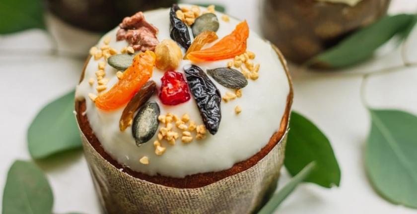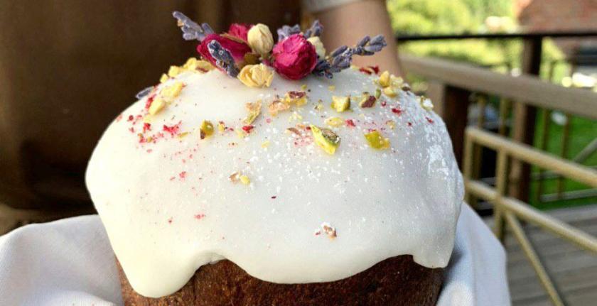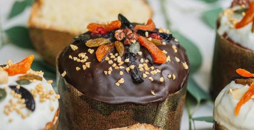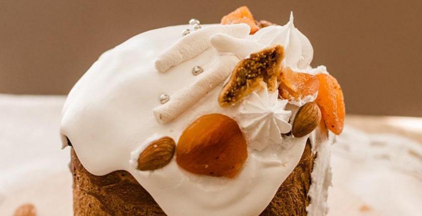 В ресторане грузинской кухни "Тот самый барашек" пекут паски с тремя видами "папах": с шоколадной, белой или нежно-розовой меренгой. В изделия добавляют курагу, цукаты, вяленую вишню и клюкву.