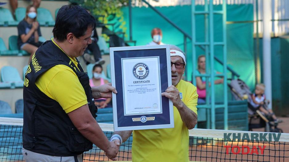 Сегодня, 7 июля, в харьковском в теннисном клубе "Уникорт" состоялась официальная церемония объявления мировым рекордсменом Книги рекордов Гиннеса знаменитого харьковчанина, 97-летнего Леонида Станиславского.