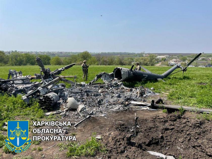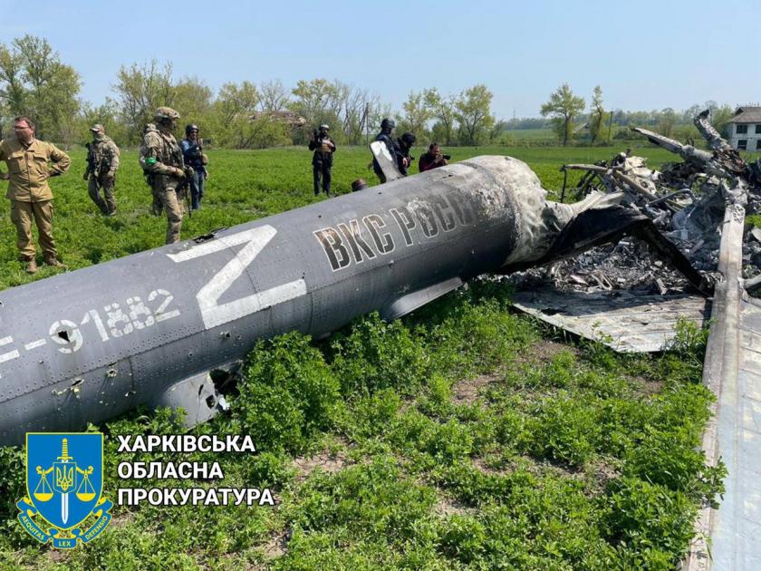 В освобожденных пригородах Харькова до сих пор лежат разбитые вертолеты РФ