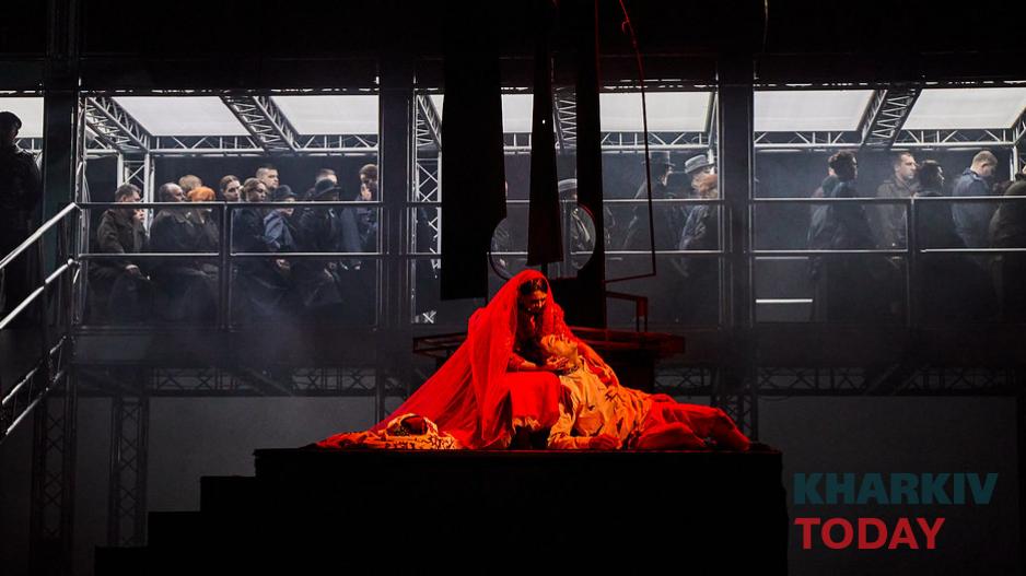 Действие одновременно происходит на нескольких планах: и на авансцене, и на нескольких этажах вертепной конструкции. Для нее идеально подошла самая большая в Украине оперная сцена —в ХНАТОБе.