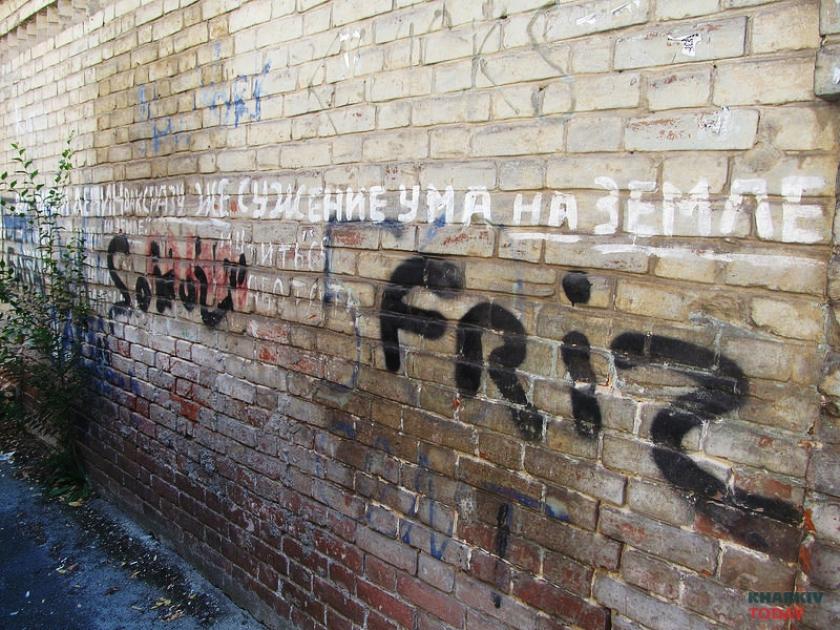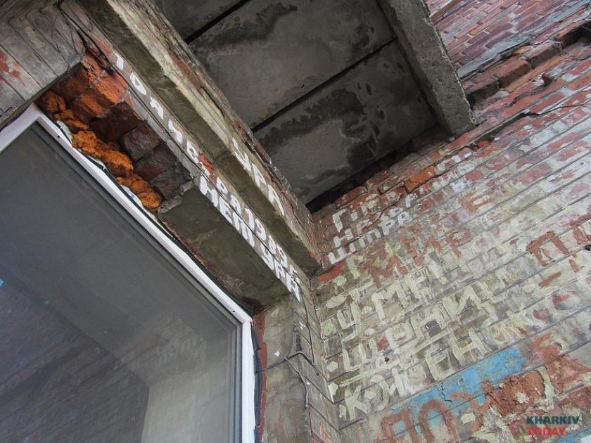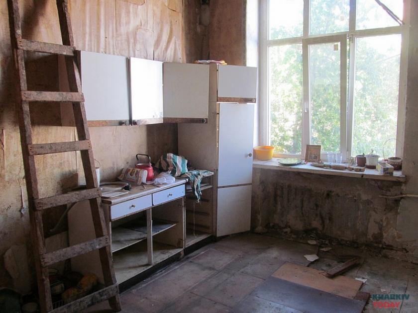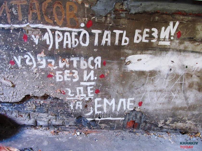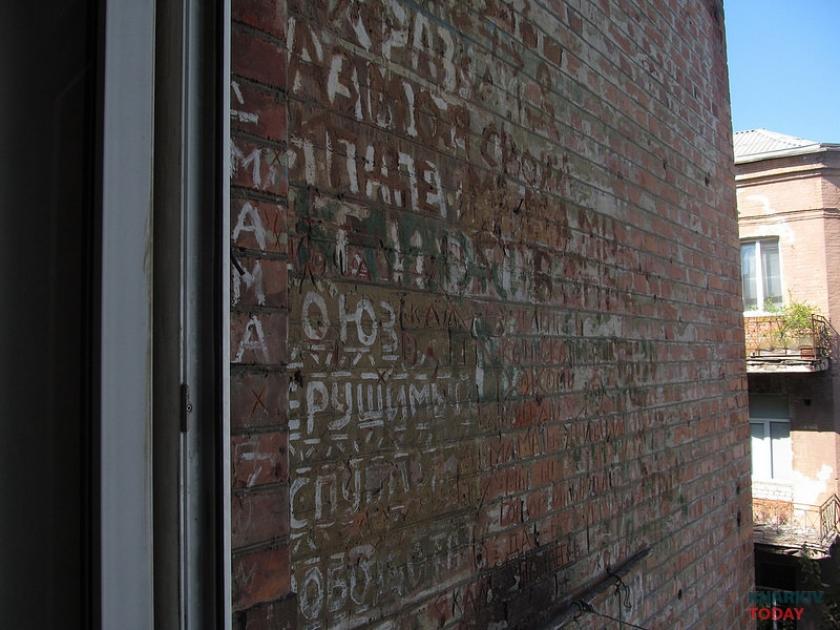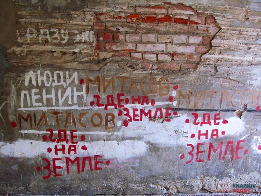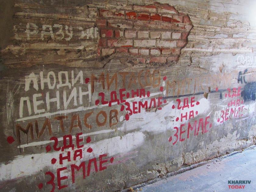 Это вообще квартира с историей, Митасов, такой был художник харьковский, – проводит ликбез Юрий. – Там смысл не в картинках, а в тексте. Надписи на полу, на стенах остались. Мебель вывезли, вызвали галерею. Здесь шкаф стоял обрисованный, его отдали в художественную галерею. По большому счету, не так много и осталось.