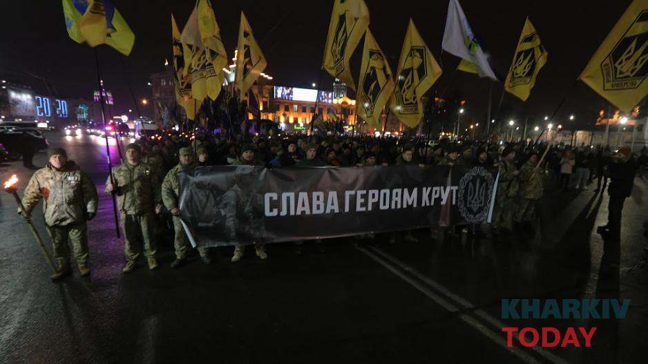 Харьковчане вышли на марш, посвященный 102-й годовщине битвы под Крутами.