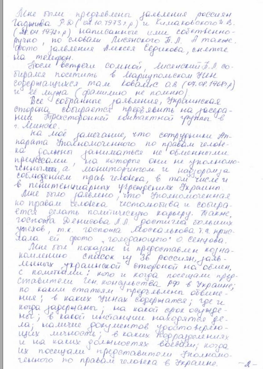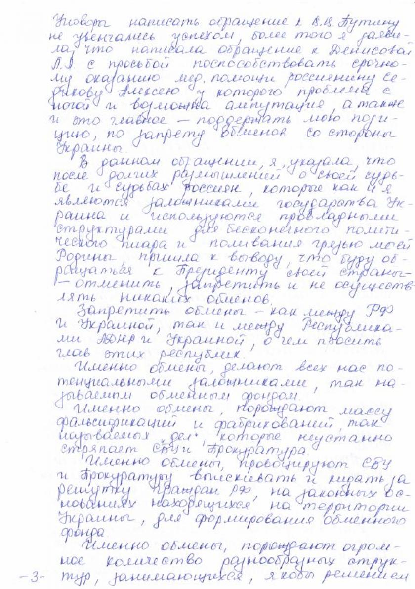 Чубарова также планировала написать обращение к Президенту Украины Петру Порошенко с просьбой отказаться от обмена пленными между Украиной и Россией и так называемыми «ЛДНР», сообщает Цензор.
