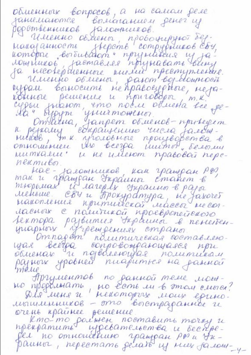 Адвокат придерживается противоположной точки зрения. Он считает обмен нормальным выходом из ситуации вооруженного конфликта на Донбассе.