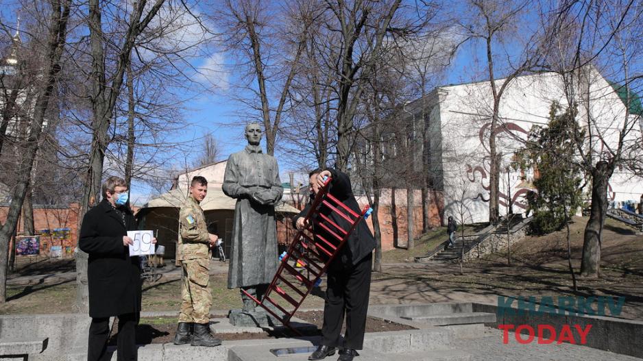 12 марта у памятника Сковороды в Харькове прошел флешмоб "К коронавирусу с мудростью".