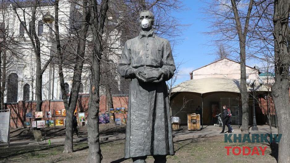 В Харькове на бронзового Сковороду надели маску от коронавируса