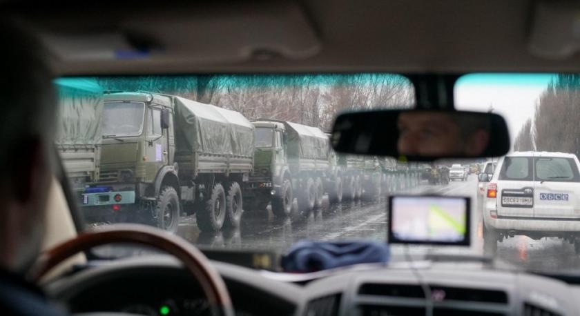 Кроме того, патруль ОБСЕ зафиксировал колонну машин в составе 6 военных грузовиков, 2 бронетранспортеров, 1 установленной зенитной установки (ЗУ- 23), а также более 20 гражданских автомобилей без номерных знаков минимум с 50 вооруженными лицами на автодороге в районе Дебальцево Донецкой области.
