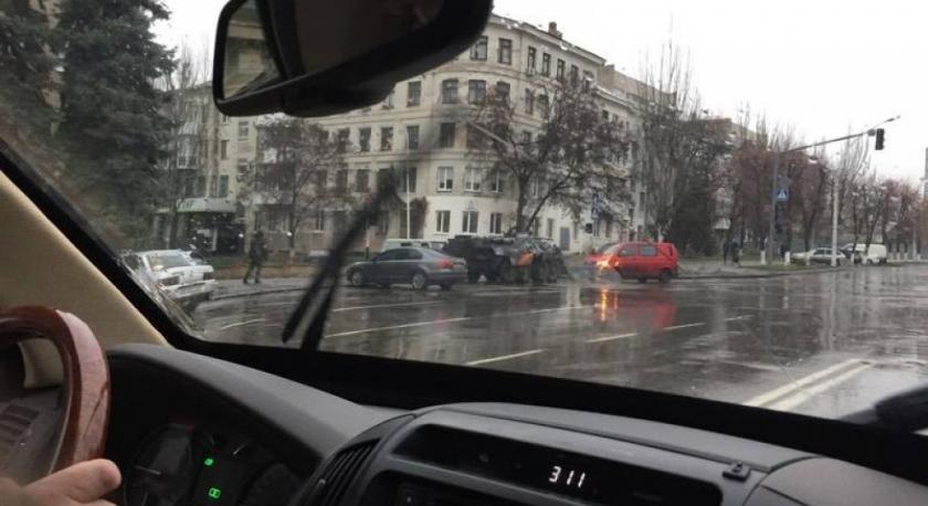 Пользователи соцсетей сообщали, что в центре Луганска под бывшее управление МВД подогнали БТР, а само здание окружили вооруженные люди, некоторые с ручными гранатометами.