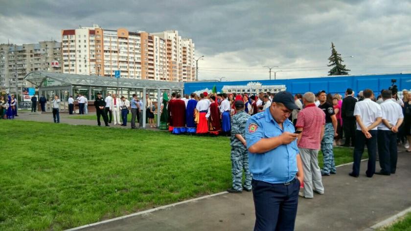 У выхода из новой станции метро организован пункт пропуска для участников торжественного открытия и журналистов.