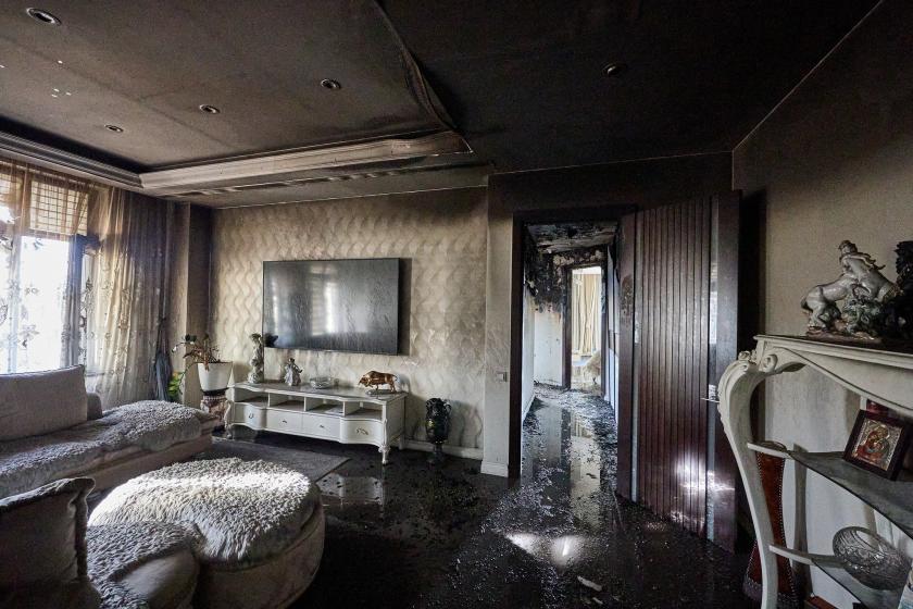 Один из беспилотников упал вблизи жилого дома в Киевском районе. Произошел пожар на втором и третьем этажах. Спасатели до сих пор пытаются потушить огонь.