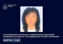 "Сначала она осуществляла учет заявлений и сообщений о преступлениях в оккупационной "милиции". Со временем женщина добровольно заняла должность "и. о. инспектора штаба" в псевдоправоохранительном органе, а затем стала "старшим инспектором группы анализа, планирования и учета Отдела полиции №1 (дислокация г. Купянск)". Псевдоправоохранительница лично осуществляла обследование учебных заведений в Купянске и после этого по каждому объекту составляла "акт обследования технической укрепленности и антитеррористической защиты объекта", — рассказали в Харьковской областной прокуратуре.