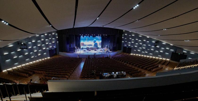 Обновленный зал вмещает 1706 человек — меньше, чем ранее, но он стал инклюзивным. Там установили подъемники для людей с инвалидностью, пандусы, специальные места.