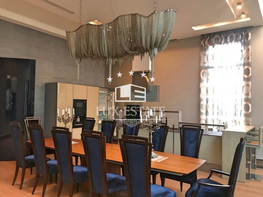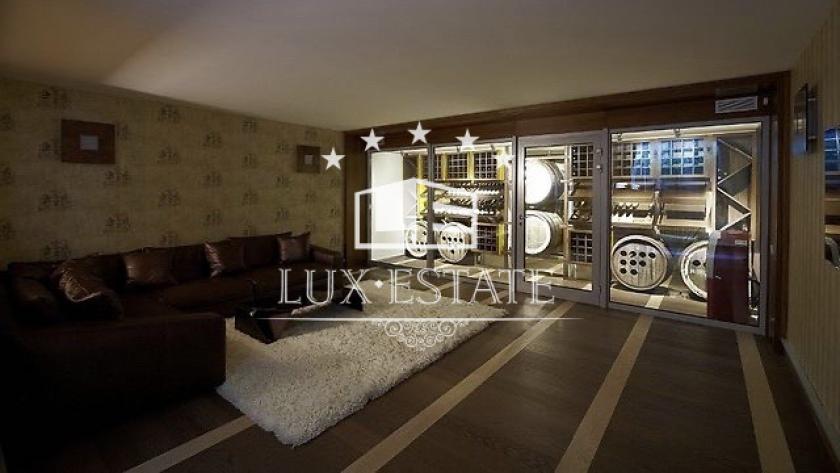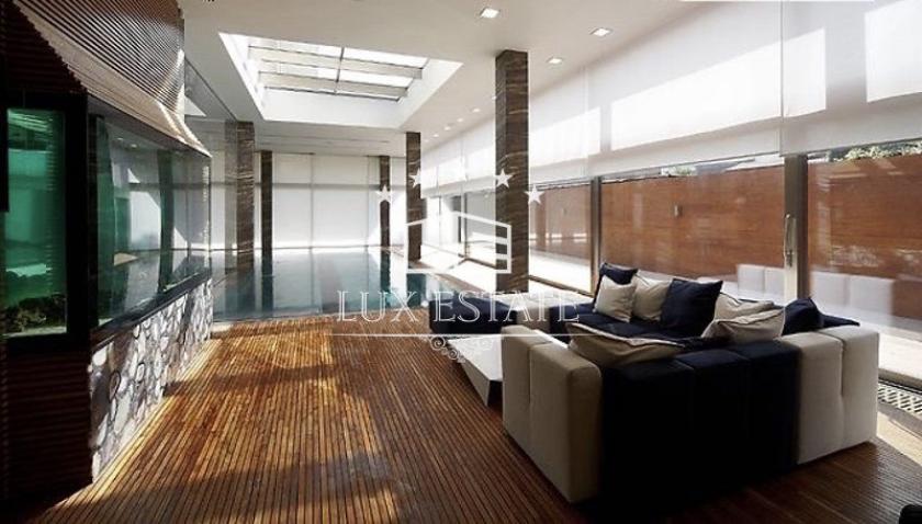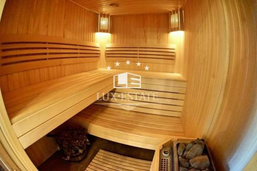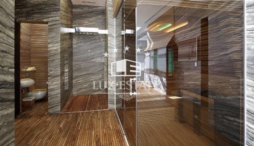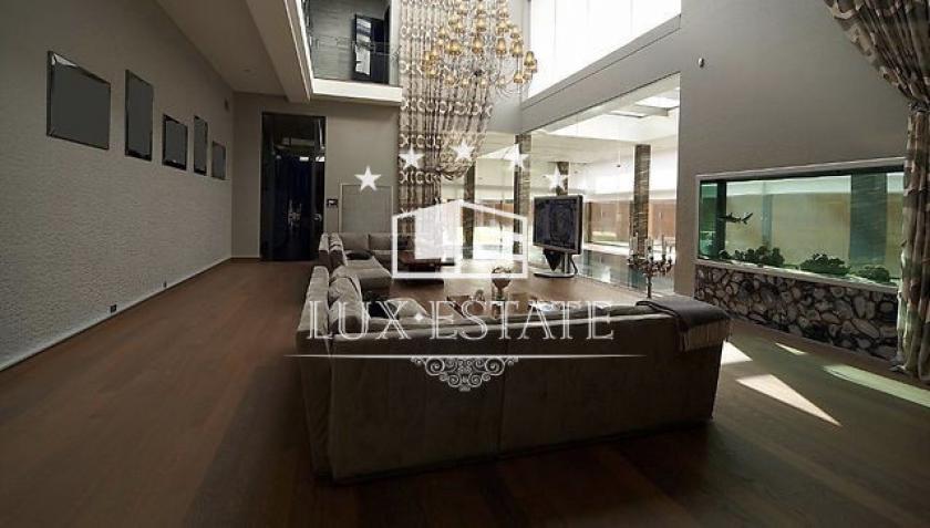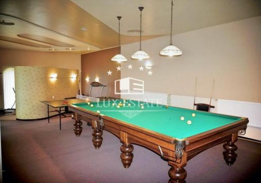 Четырехэтажный дом площадью 680 кв. м. на участке в 16 соток. На первом уровне расположены: спортзал, бильярдная, холл, всесезонный бассейн, сауна/баня, душевая, санузел, помещения для бытовых нужд и топочная.