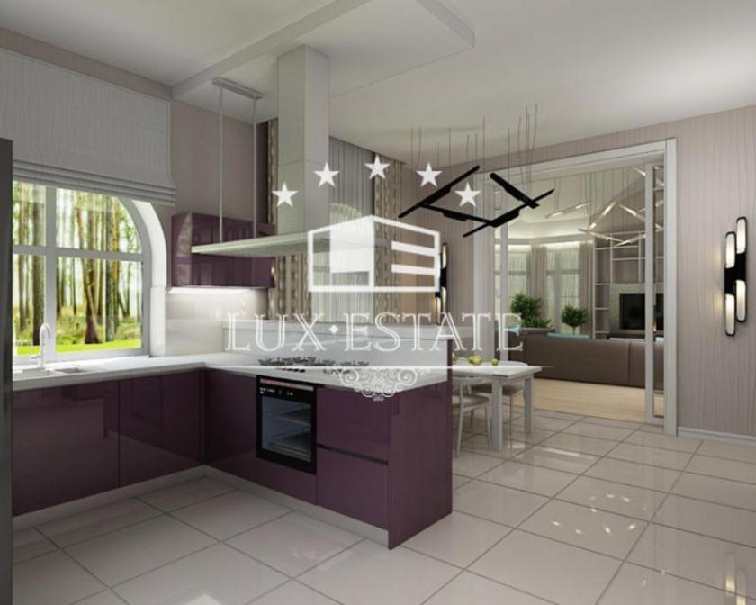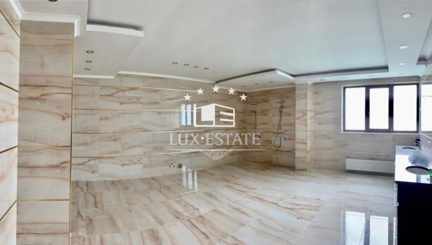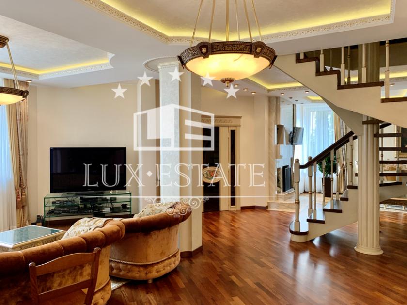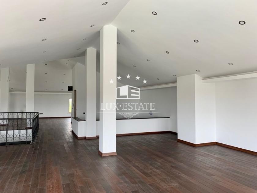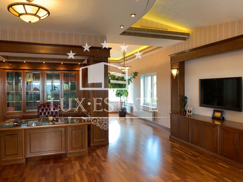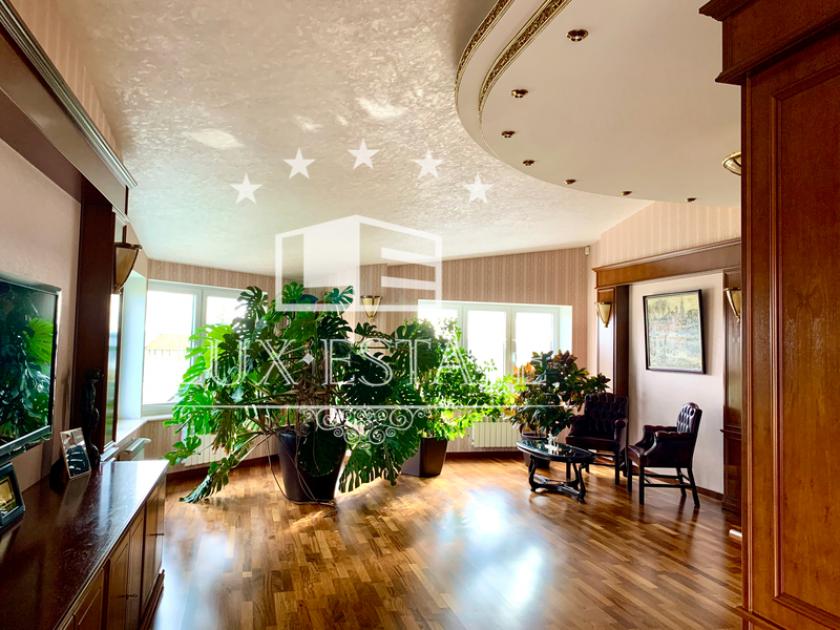 Состоит из основного дома (990 кв. м.) и гостевого дома (43 кв. м.). В основном доме есть два этажа, цокольный этаж и мансарда, 6 санузлов, кухня-гостиная, 4 спальни, спортивная зона,