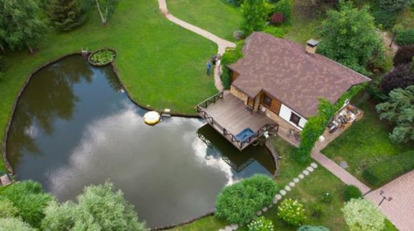 На участке 20 соток есть SPA- комплекс с баней и небольшое озеро.