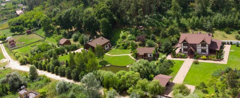Усадьба расположена на территории историко-археологического заповедника на лесной опушке с двумя озерами и выходом к Салтовскому водохранилищу.