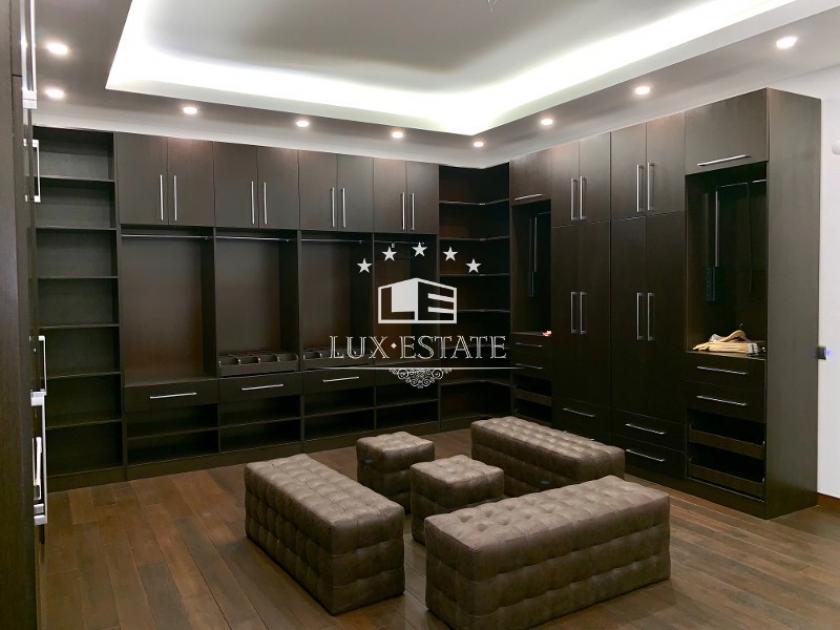 Есть цокольный этаж, где находятся хозяйственные комнаты и спортзал, а также дом для охраны и гараж на 4 автомобиля.