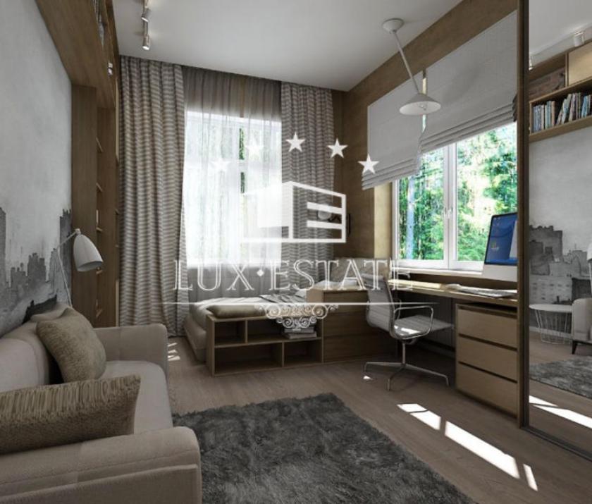 Третий уровень: холл, две спальни с отдельными ванными комнатами и видовым балконом, гардероб, кабинет с панорамными окнами на Саржин Яр. На четвёртом уровне находятся: холл, две просторные спальни, санузел.