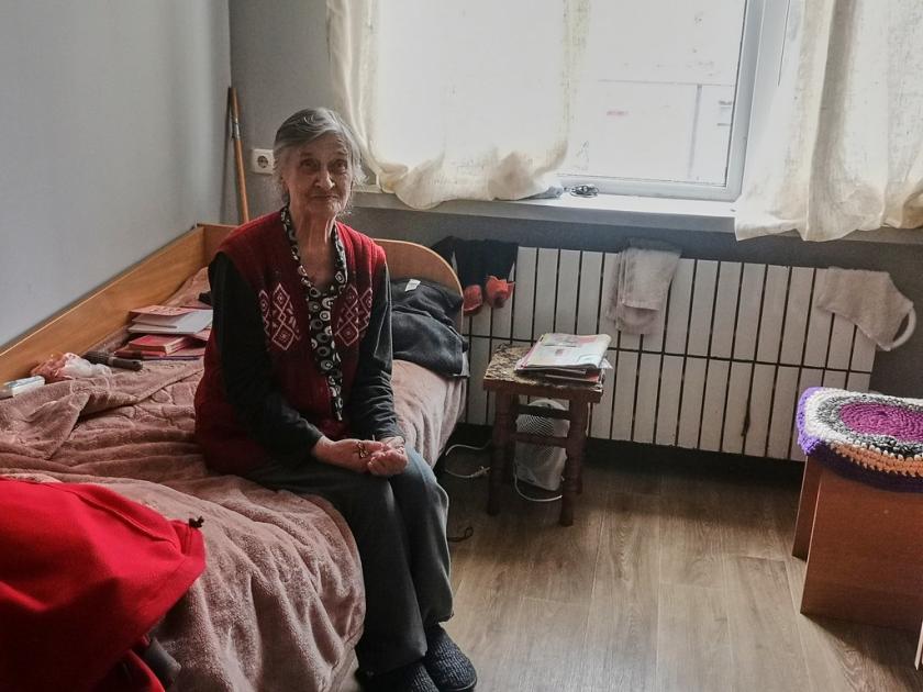 За время Великой войны через приют прошло более 150 человек. Сейчас здесь проживают 45 пенсионеров, 22 из них не передвигаются самостоятельно. Условия в общежитии не очень подходящие для них. Комнаты довольно маленькие, у них живут по два-три человека, нет общей столовой и гостиной, где старики могли бы собираться, поэтому телевизор пока установили в холле. В хорошую погоду жители приюта могут посидеть на веранде, но сейчас уже холодно, поэтому они собираются пообщаться прямо в коридорах.