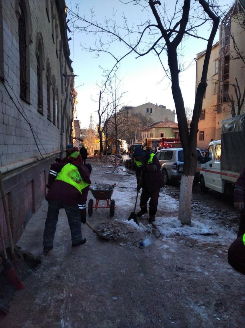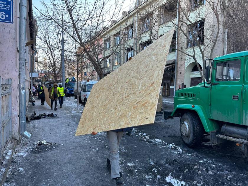 "Сейчас коммунальники оперативно устраняют последствия ракетного удара — закрывают выбитые окна и двери, ремонтируют фасады домов. На месте происшествия также работают сотрудники КП "Харьковблагоустройство". Они убирают стекло и рамы из разбитых окон, обломки и габаритный мусор", — рассказали в департаменте.
