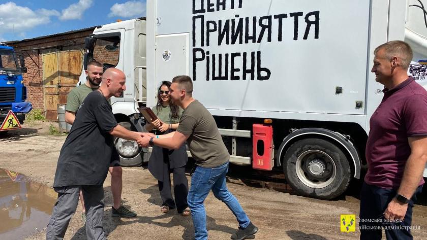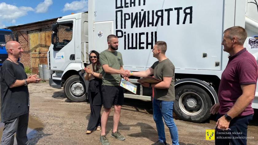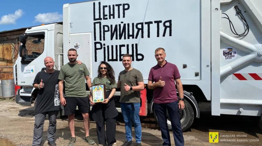 Мусоровоз передали директору КП "Благоустройство города Изюм" Юрию Брылю. Волонтерам вручили благодарности от имени начальника Изюмской городской военной администрации Валерия Марченко.