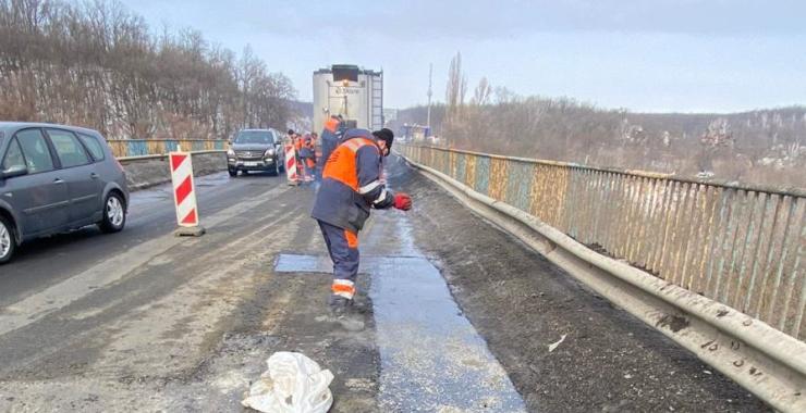 "Отдельное внимание уделяем искусственным сооружениям. Здесь дорожники работают литыми смесями и устраняют деформации швов, чтобы обеспечить надежность и долговечность конструкций", — уточняют в Службе.