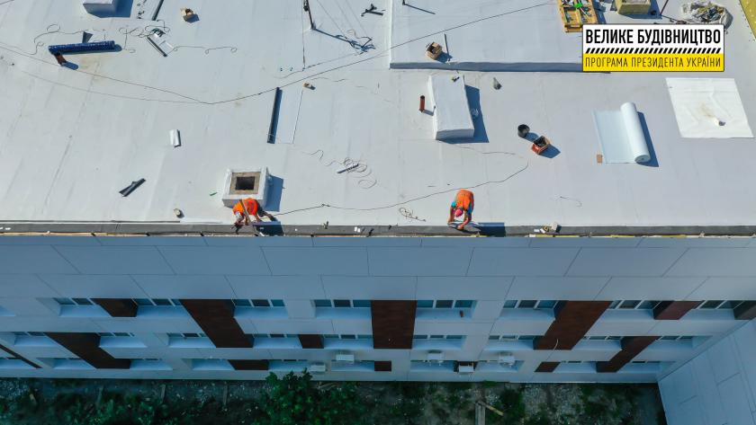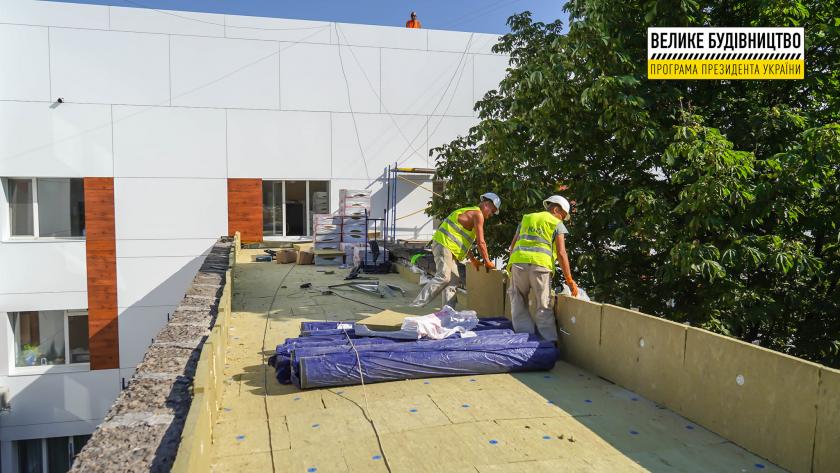 Строители утепляют крышу и фасад, работают над входными группами. Фотоотчет с места ремонта опубликовал координатор программы "Большое строительство" Юрий Голик.