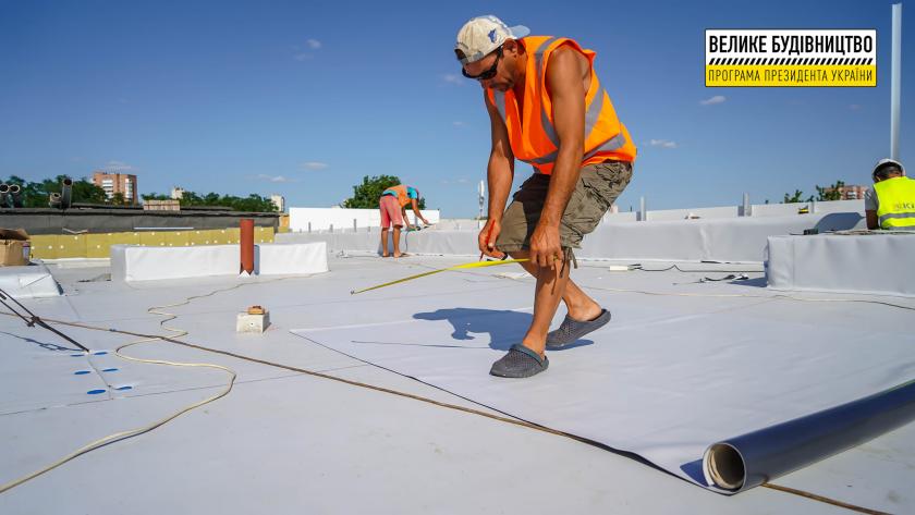 Кровлю сделают мембранную, ориентировочно 2300 квадратных метров. Также выполнят тепло- и гидроизоляцию фундамента, сделают входные группы с облицовкой плиткой.