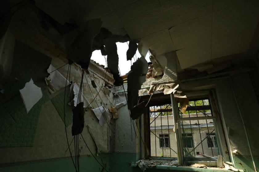 На опубликованных главой Харьковской областной военной администрации фотографиях видно, что в результате обстрелов в здании онкоцентра вылетели из окон стекла, образовалась дыра в крыше, внутри выбило двери и обрушились конструкции.