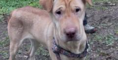 Харьковские волонтеры вместе с военными смогли спасти собаку породы шарпей из разрушенного дома в Донецкой области. Виве уже нашли семью.