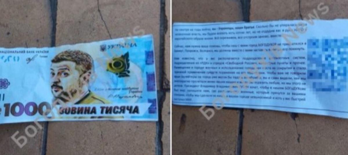 "На обороте вместо номинала — призывы к коллаборационизму: предложения "подработать" на сливе позиций ВСУ, призывы к протестам против власти или дискредитация наших защитников", — сообщили в Богодуховском горсовете.
