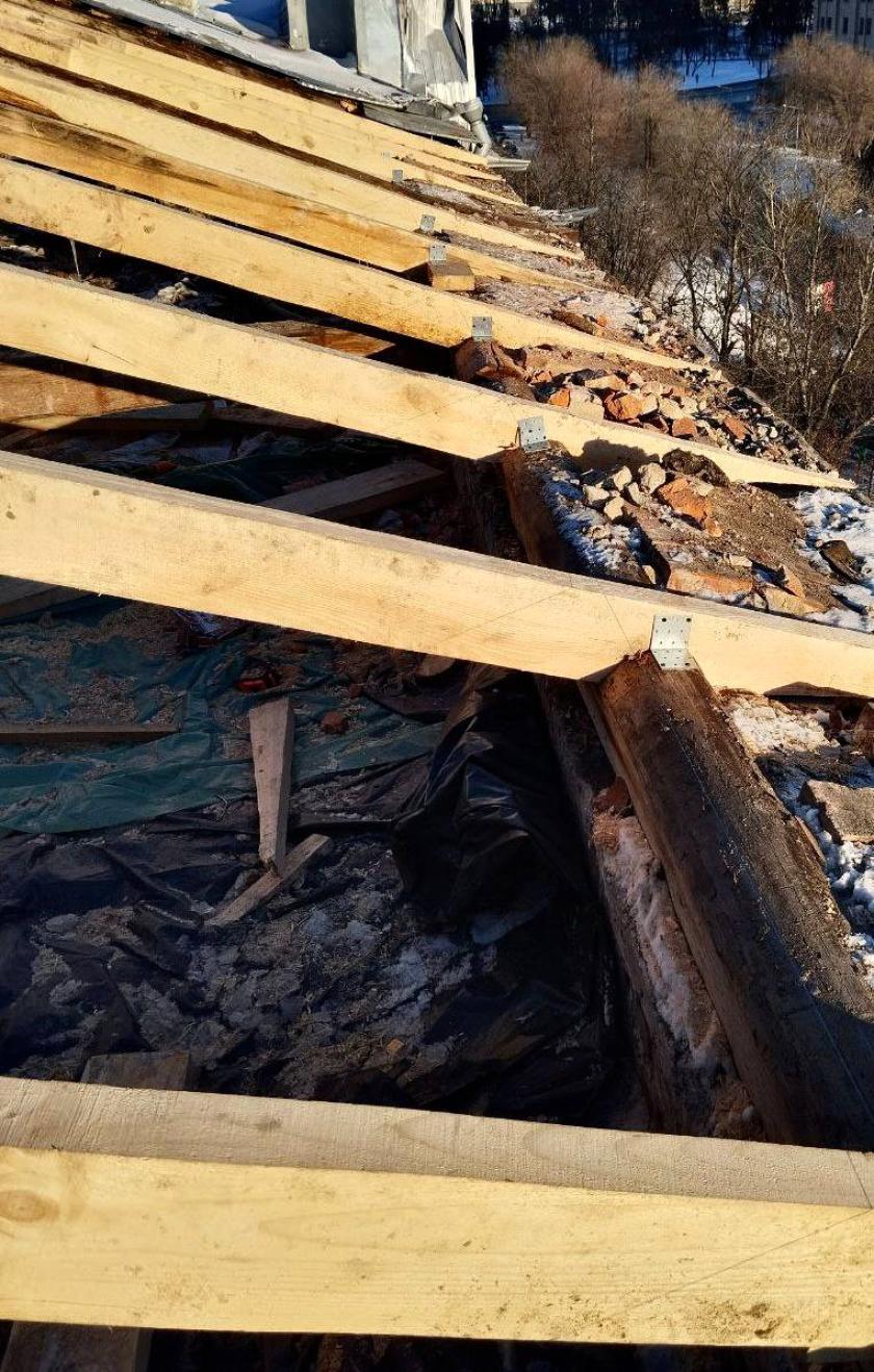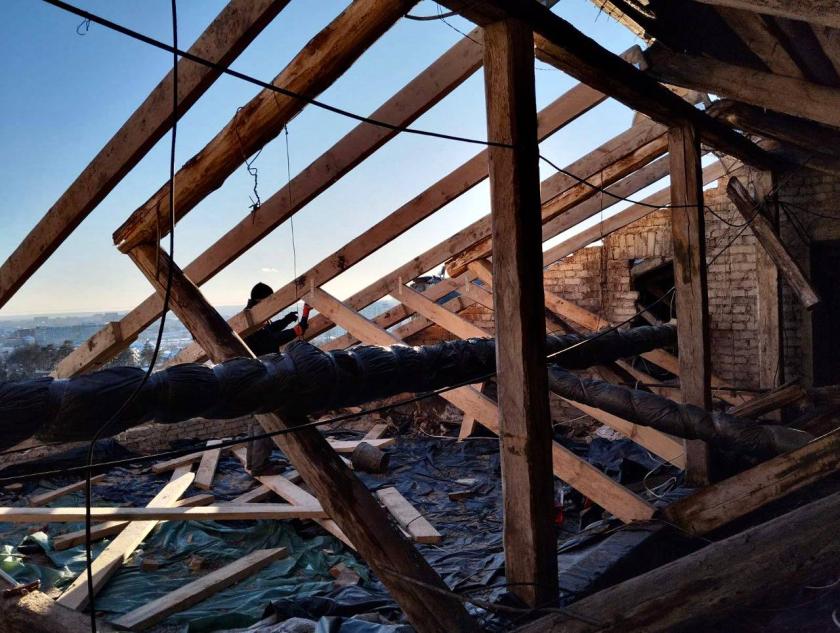 "Пока продолжается разработка проектно-сметной документации по дальнейшему ремонту этого дома, мы восстановили стропильную систему. Далее будем укрывать ее специальным тентом, чтобы снег и дождь не нанесли ущерба дому и его конструкциям", — рассказали в коммунальном предприятии "Харьковспецстрой".