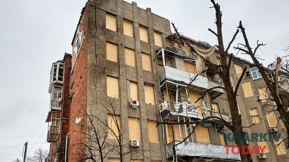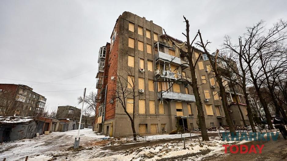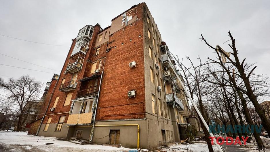 Обстрелянному дому в центре Харькова делают временную крышу