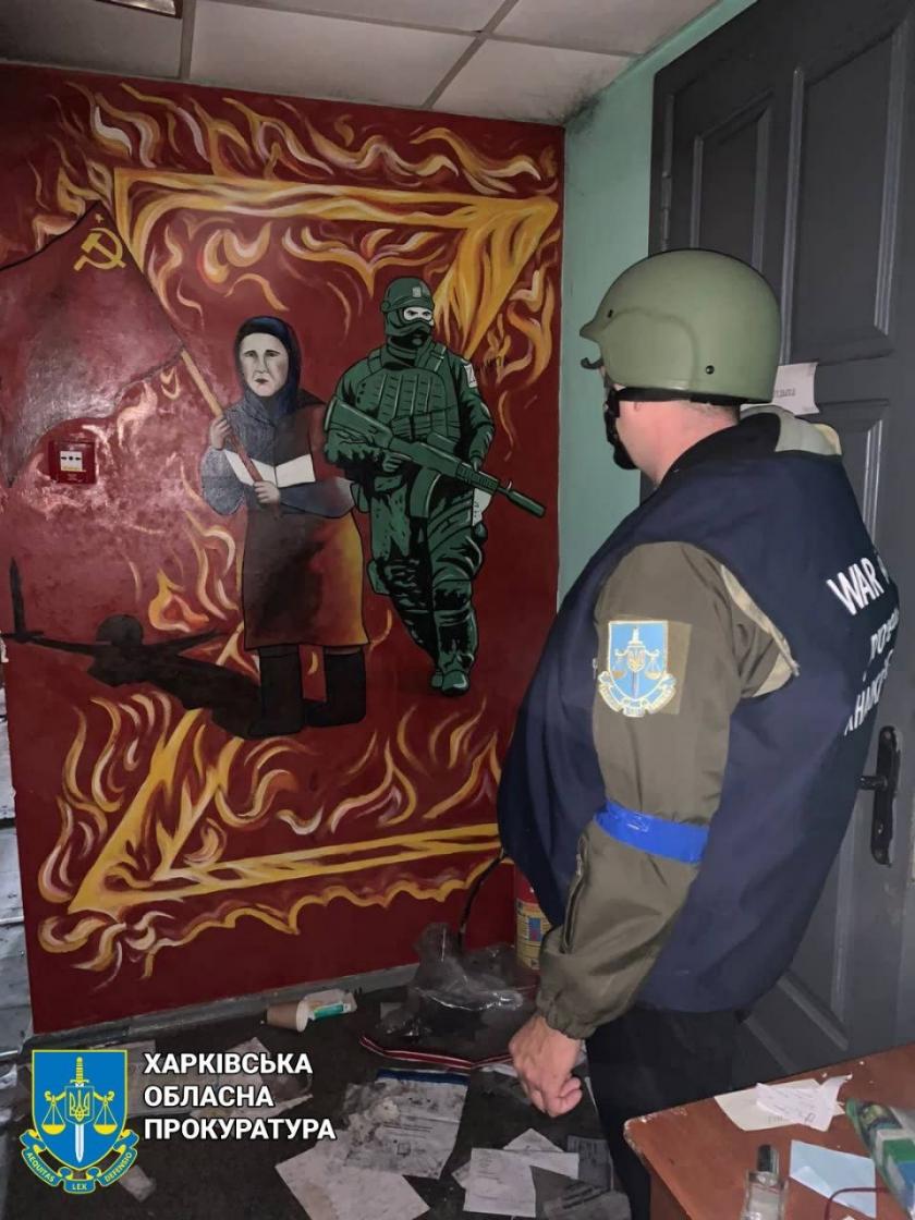 "Пугая людей, российские военные нарисовали на стене картину: на фоне латинской буквы "Z" женщина с советским флагом, а позади нее — оккупант. Даже здесь вражеская армия прячется за спиной мирных жителей и верит в то, что в Украине их кто-то ждет", — отметили в прокуратуре.