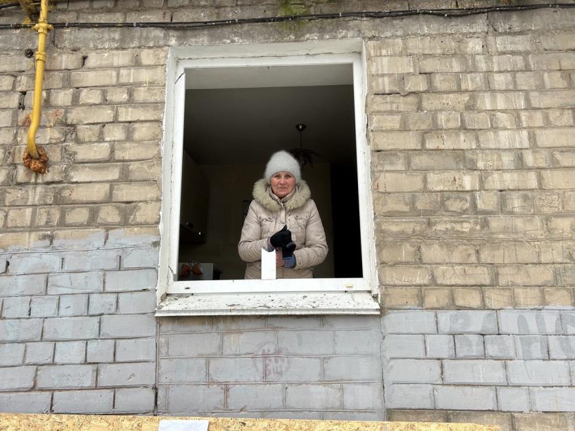 "Вырвало все окна в квартире. Я уже не спала и успела укрыться в коридоре после первого взрыва. Вот теперь выгребаю стекло. Так жаль — мы недавно только окна поставили, это еще те, после 2022 года, тогда у нас все вылетело. Все лето, всю осень ремонтировали, и все — ничего нет снова", — рассказывает жительница дома по Гвардейцев-Широнинцев Марина Дидусенко.