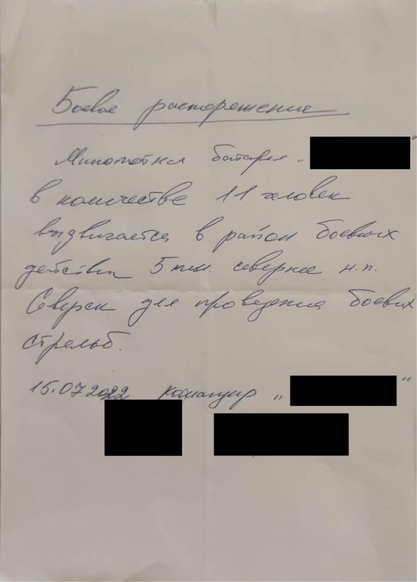 Отметим, на опубликованных фото есть боевое распоряжение, отчет о боевых действиях 1 роты и рапорт о награждении. Все документы подписаны в июле 2022 г.