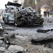 "В результате обстрела повреждено остекление помещений двух медицинских учреждений рядом с местом попадания, а также по меньшей мере четыре автомобиля", — сообщил начальник ХОВА Олег Синегубов.