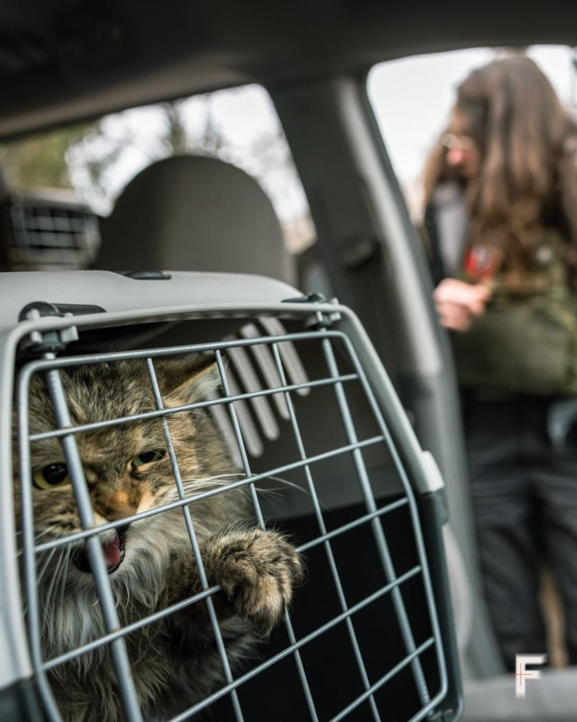 Одна из поездок – в Боровую на Харьковщине. "На блокпосте останавливается автомобиль синего цвета, оклеенный наклейками с кошачьими лапками и забавными кошачьими мордашками. За рулем - женщина, в салоне - около двадцати переносок для животных. Женщина едет в поселок Боровая, чтобы эвакуировать 16 кошек и двух собак. волонтеры и военные, которые попросили унести животных, пока это еще возможно",— рассказали историю на странице Frontliner.
