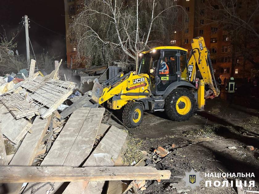 Ракетный удар разрушил двухэтажный жилой дом, повреждены 26 многоквартирных домов, 6 нежилых построек, 19 авто. Спасатели ликвидировали 2 очага возгорания на площади 20 кв.
