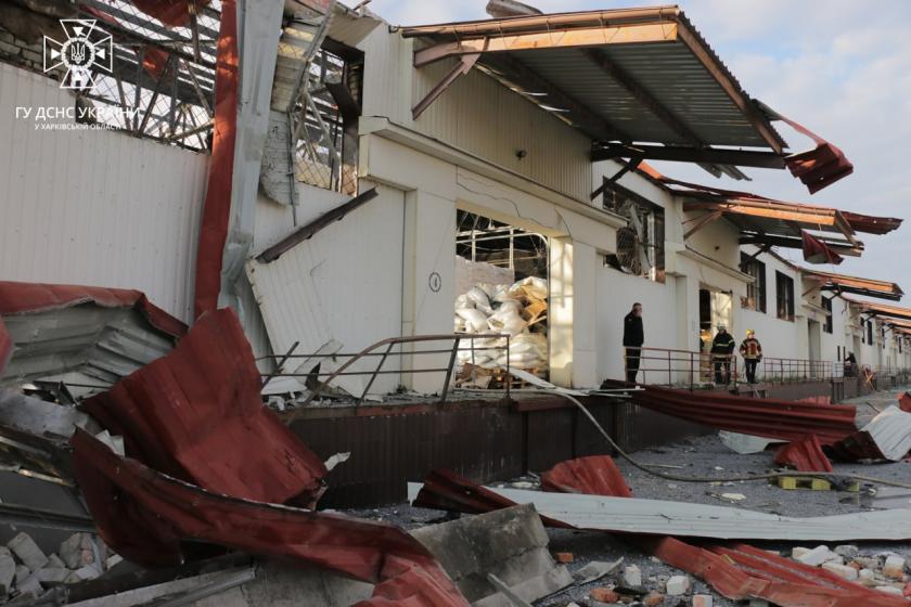 После попадания ракет в Основянском районе на складах произошел пожар. Огонь распространился на площадь около 150 квадратных метров. Ликвидировали пожар 15 спасателей. В 10:55 огонь потушили.