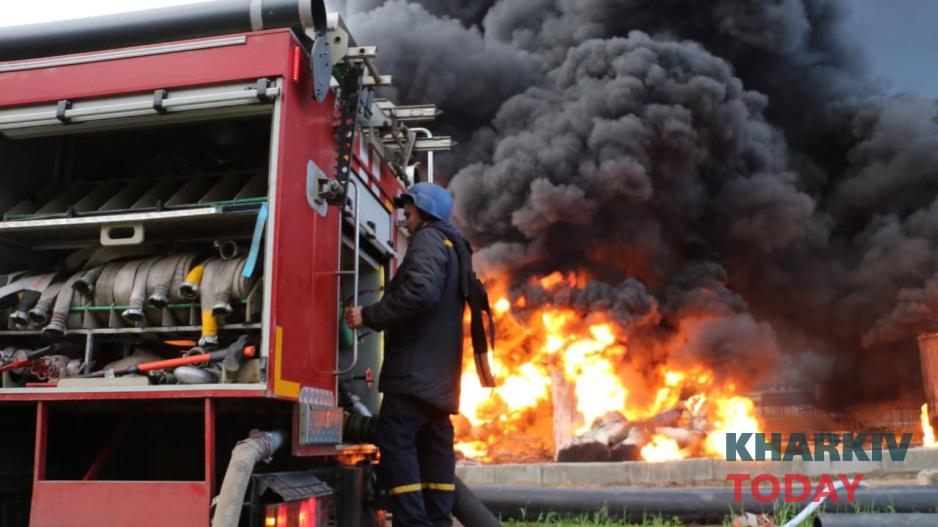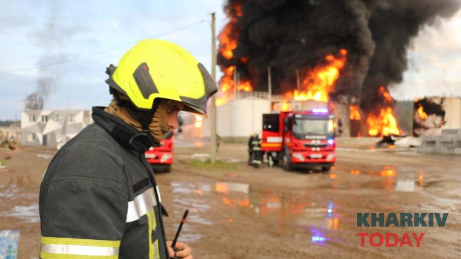 Сотрудники ГСЧС не могли вовремя выехать на пожар из-за угрозы новых ударов. На момент прибытия спасателей на Мерефянском нефтеперерабатывающем заводе горели многие резервуары с нефтепродуктами, пожар перекинулся на соседний лес. На ликвидацию пожара привлекли 15 автоцистерн и три пожарных поезда.