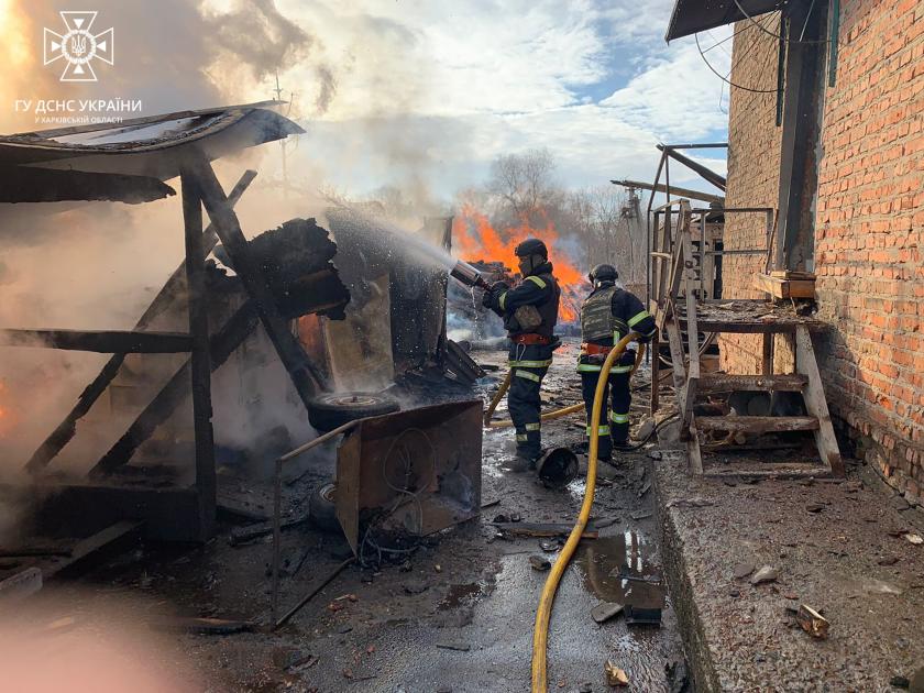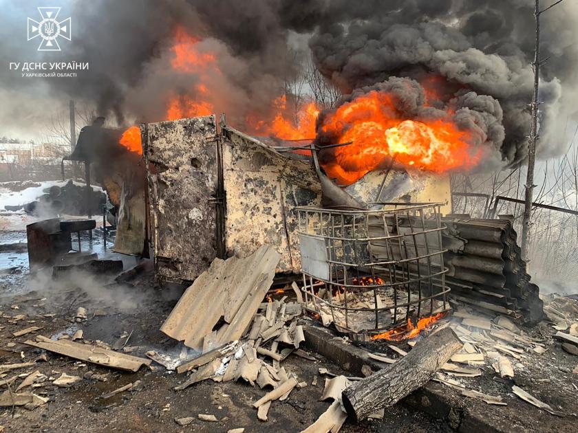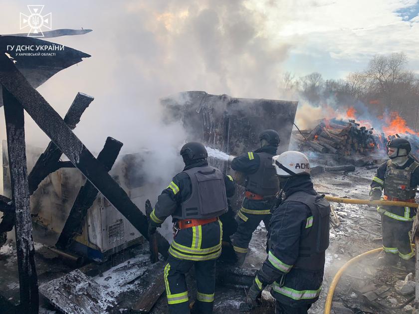 "В результате попадания снарядов произошло несколько очагов возгорания на территории местного коммунального предприятия", —рассказали в пресс-службе ГСЧС в Харьковской области.