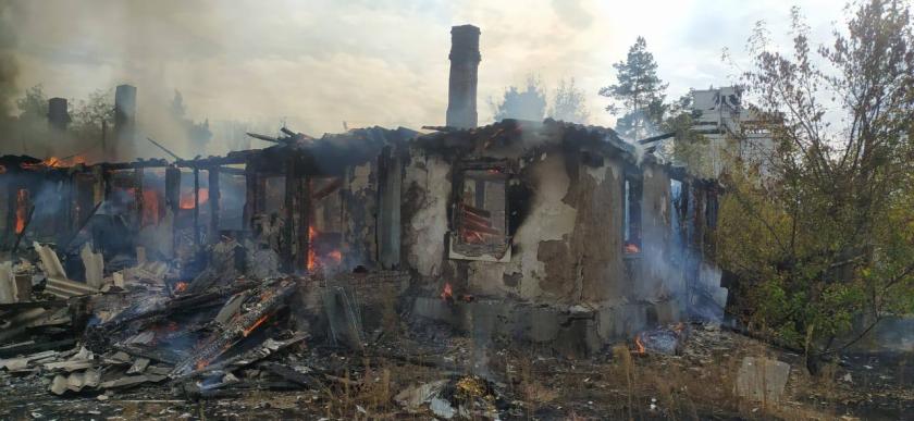 После обстрела дом загорелся.