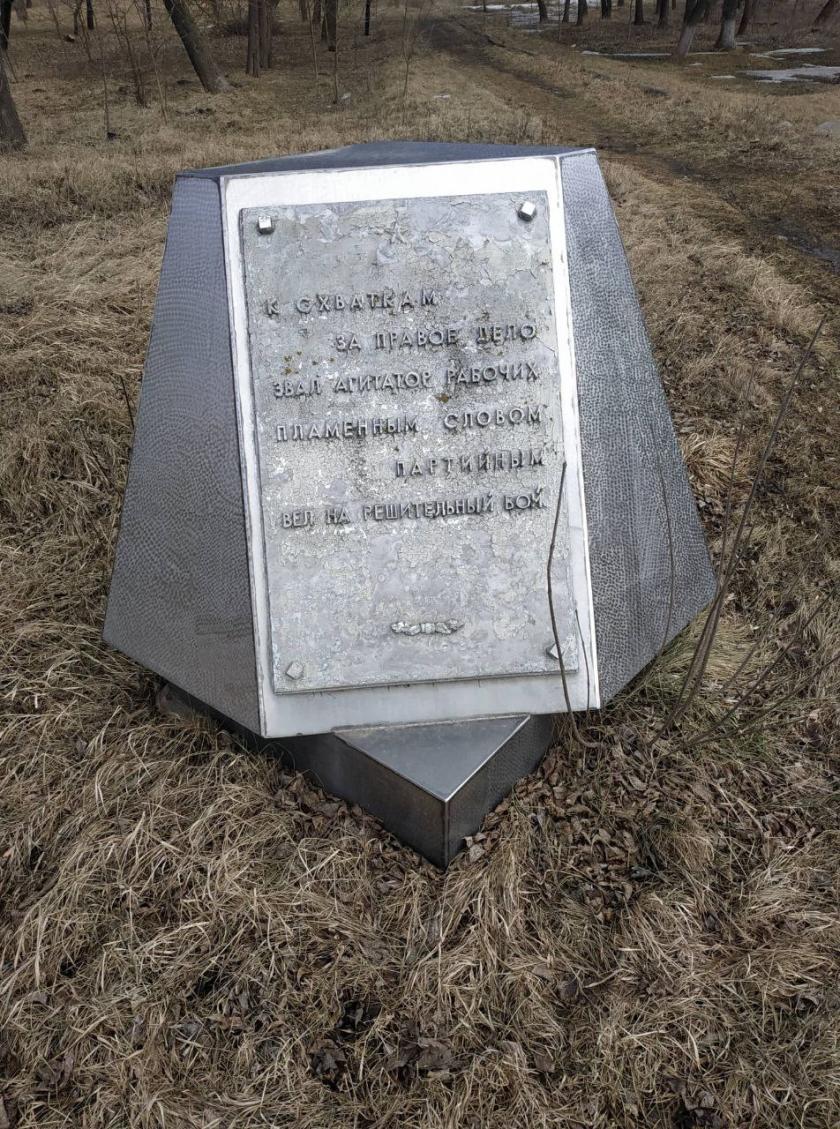 На монументе "героям гражданской войны" оставались таблички с пропагандой СССР.