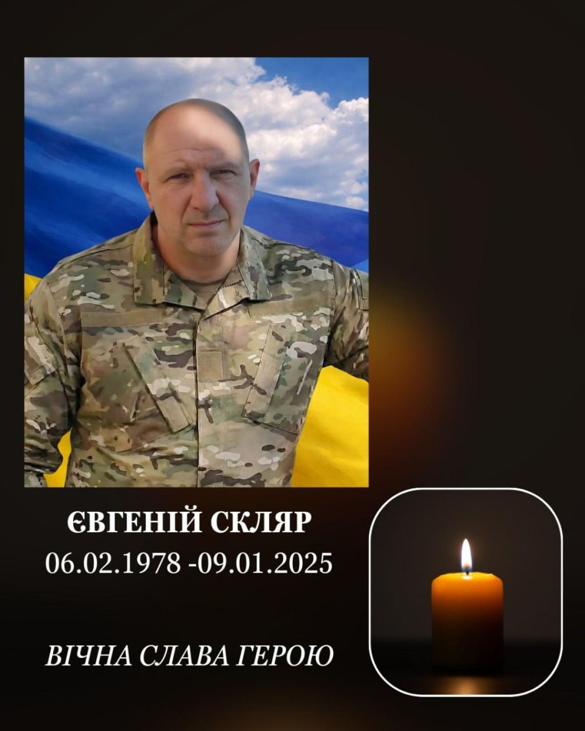 Евгений Скляр встал на защиту Украины в 2024 году. Он служил главным сержантом-командиром зенитного ракетного отделения 157-й механизированной бригады. Год назад старший сержант перестал выходить на связь и считался пропавшим без вести. В январе 2026 года гибель Евгения Скляра подтвердили официально: он погиб во время выполнения боевого задания 9 января 2025 года вблизи Курахово Покровского района (Донецкая область).